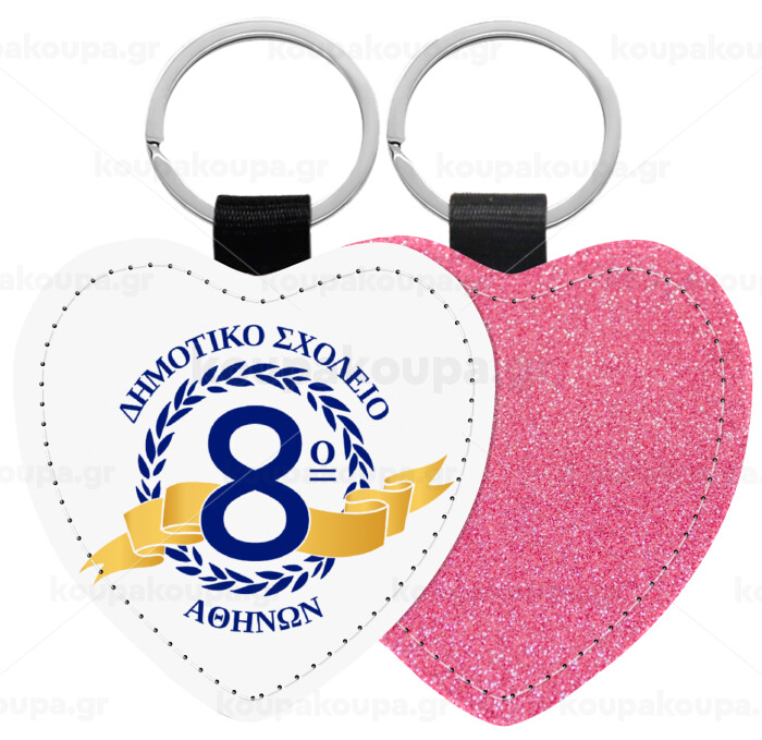Σχολικό σήμα κορδέλα, Μπρελόκ PU δερμάτινο glitter καρδιά ΡΟΖ