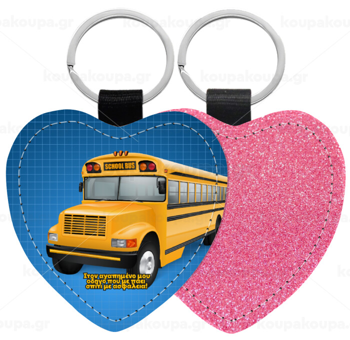 Στον αγαπημένο μου οδηγό σχολικού!, Μπρελόκ PU δερμάτινο glitter καρδιά ΡΟΖ