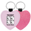 THE BEST Teacher chemical symbols, Μπρελόκ PU δερμάτινο glitter καρδιά ΡΟΖ