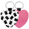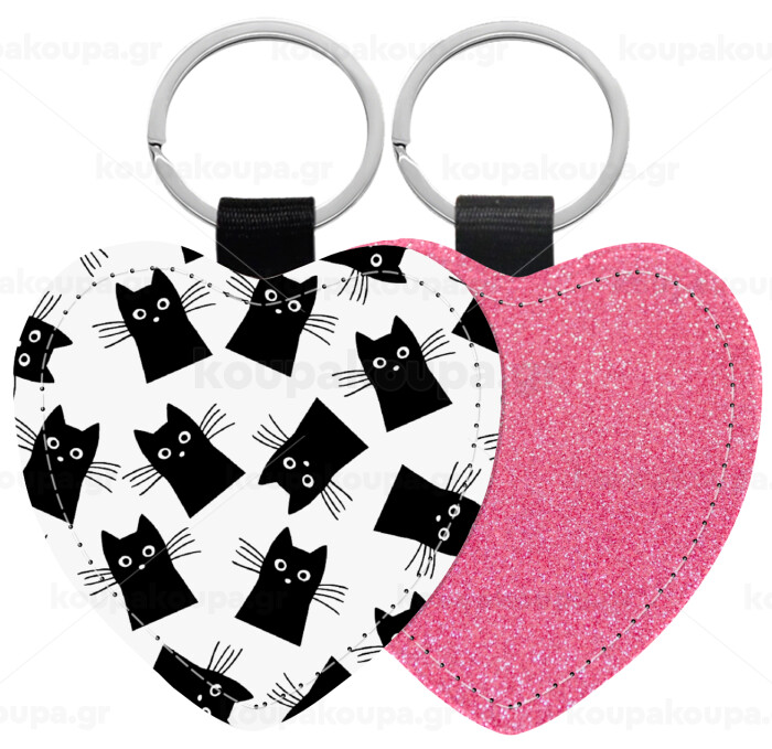 Μαύρη γάτα, Μπρελόκ PU δερμάτινο glitter καρδιά ΡΟΖ