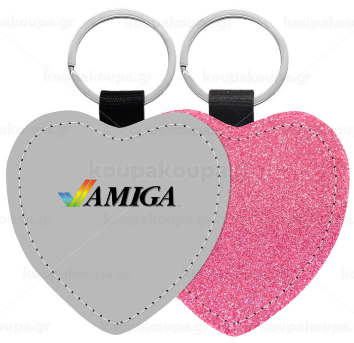 amiga, Μπρελόκ PU δερμάτινο glitter καρδιά ΡΟΖ
