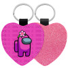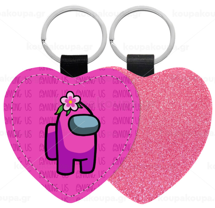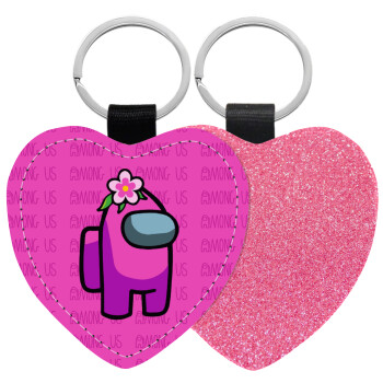Among US girl, Μπρελόκ PU δερμάτινο glitter καρδιά ΡΟΖ