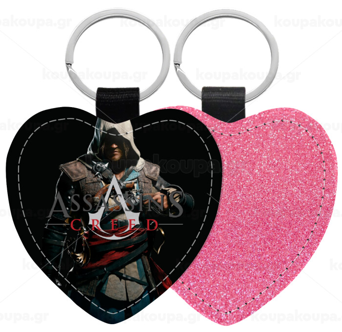 Assassin's Creed, Μπρελόκ PU δερμάτινο glitter καρδιά ΡΟΖ