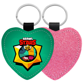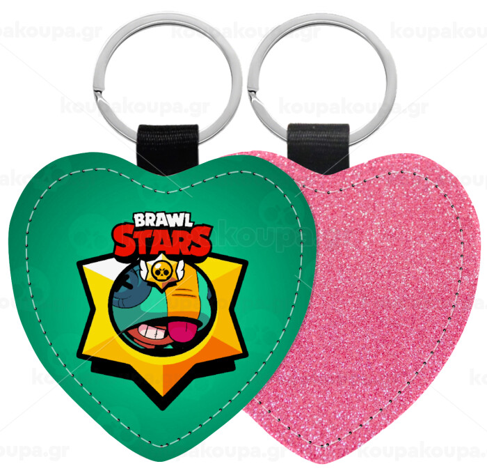 Brawl Stars Leon, Μπρελόκ PU δερμάτινο glitter καρδιά ΡΟΖ