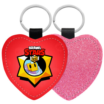 Brawl Stars Sprout, Μπρελόκ PU δερμάτινο glitter καρδιά ΡΟΖ