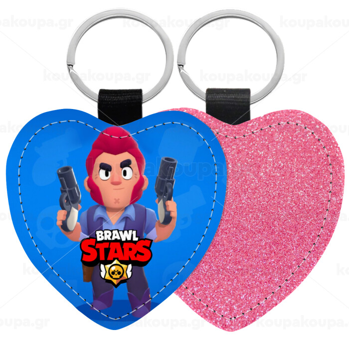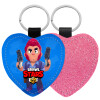Brawl Stars Colt, Μπρελόκ PU δερμάτινο glitter καρδιά ΡΟΖ