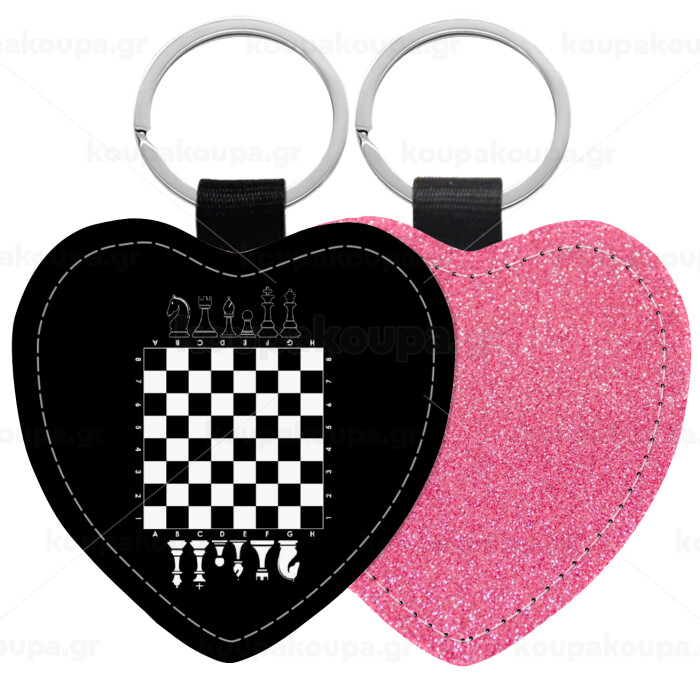 Σκάκι, Μπρελόκ PU δερμάτινο glitter καρδιά ΡΟΖ