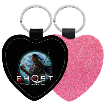 Ghost of Tsushima, Μπρελόκ PU δερμάτινο glitter καρδιά ΡΟΖ