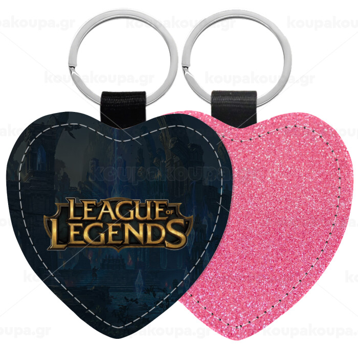 League of Legends LoL, Μπρελόκ PU δερμάτινο glitter καρδιά ΡΟΖ