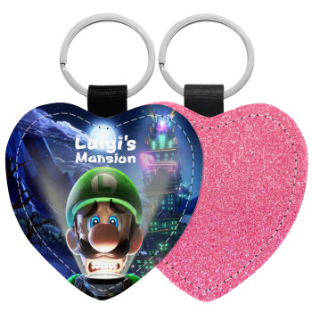 Luigi's Mansion, Μπρελόκ PU δερμάτινο glitter καρδιά ΡΟΖ