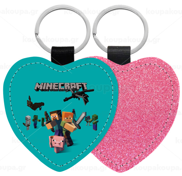 Minecraft Alex, Μπρελόκ PU δερμάτινο glitter καρδιά ΡΟΖ