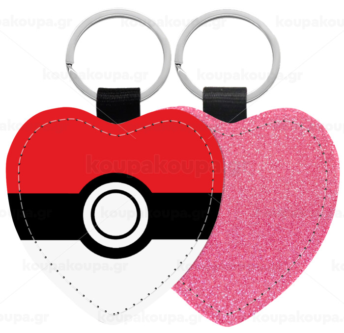 Pokemon ball, Μπρελόκ PU δερμάτινο glitter καρδιά ΡΟΖ