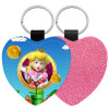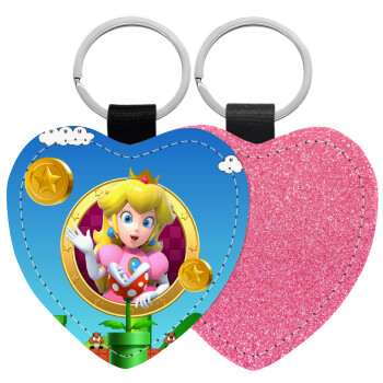Princess Peach Toadstool, Μπρελόκ PU δερμάτινο glitter καρδιά ΡΟΖ