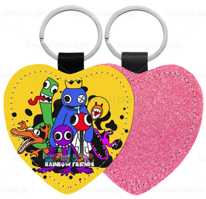 Rainbow friends, Μπρελόκ PU δερμάτινο glitter καρδιά ΡΟΖ