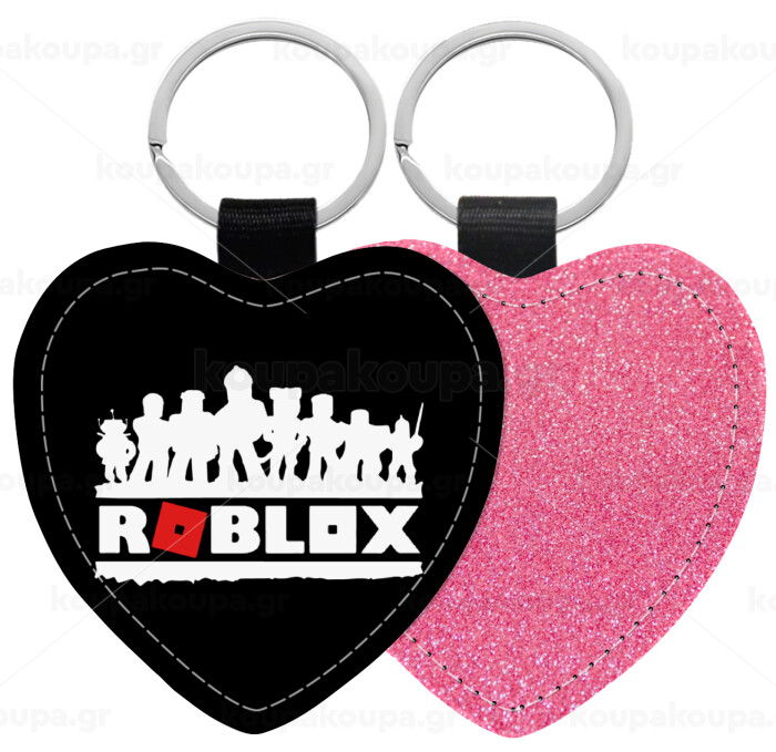 Roblox team, Μπρελόκ PU δερμάτινο glitter καρδιά ΡΟΖ