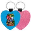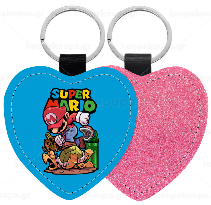 Super mario Jump, Μπρελόκ PU δερμάτινο glitter καρδιά ΡΟΖ