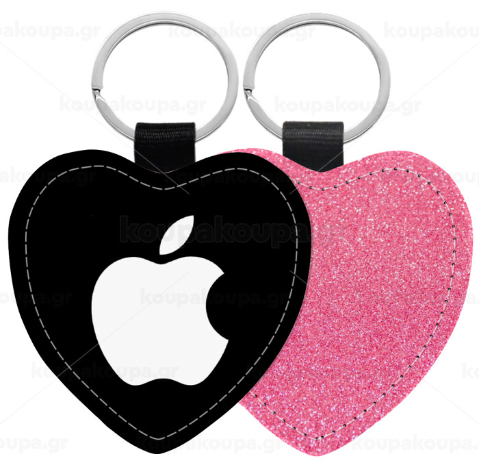 apple, Μπρελόκ PU δερμάτινο glitter καρδιά ΡΟΖ