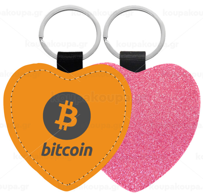Bitcoin, Μπρελόκ PU δερμάτινο glitter καρδιά ΡΟΖ