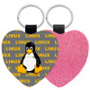 Linux, Μπρελόκ PU δερμάτινο glitter καρδιά ΡΟΖ