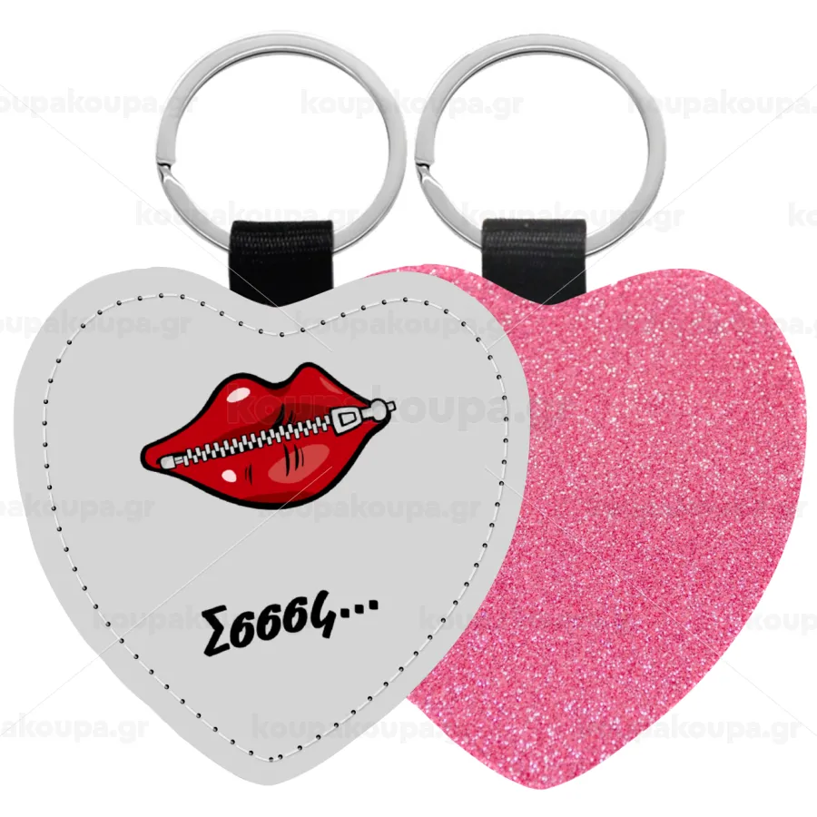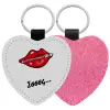 Σσσσς..., Μπρελόκ PU δερμάτινο glitter καρδιά ΡΟΖ