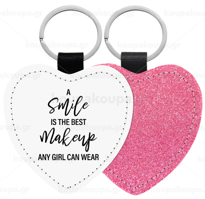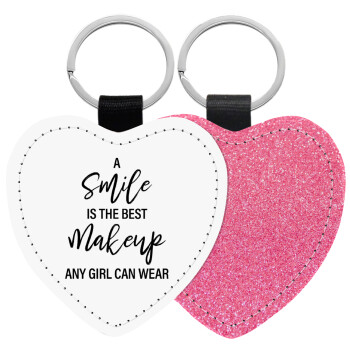 A slime is the best makeup any girl can wear, Μπρελόκ PU δερμάτινο glitter καρδιά ΡΟΖ