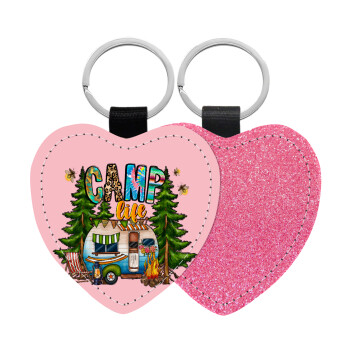 Believe in your self, Μπρελόκ PU δερμάτινο glitter καρδιά ΡΟΖ