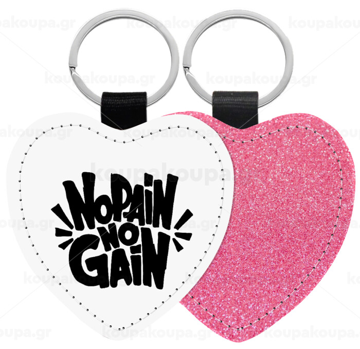 No pain no gain, Μπρελόκ PU δερμάτινο glitter καρδιά ΡΟΖ