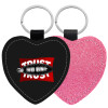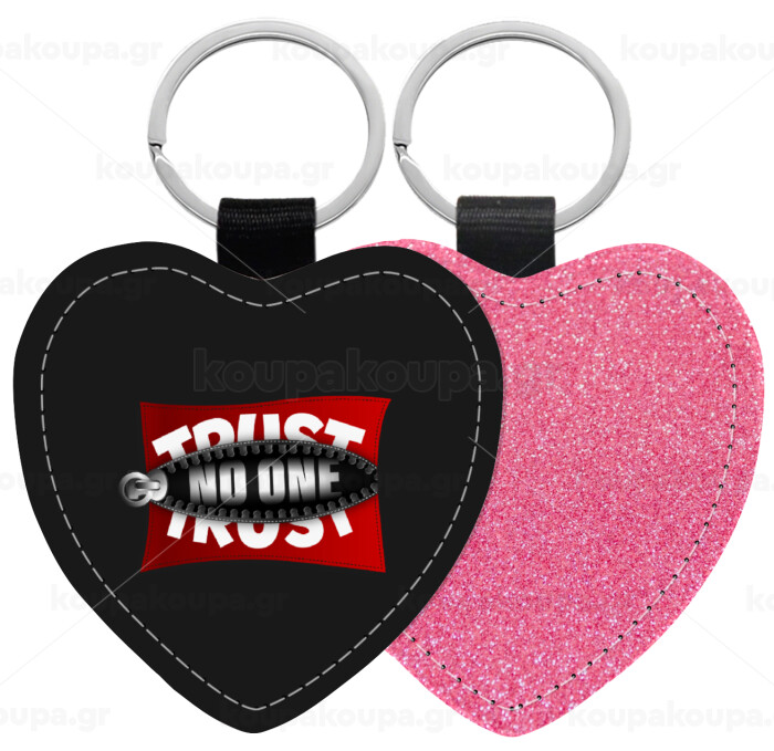 Trust no one... (zipper), Μπρελόκ PU δερμάτινο glitter καρδιά ΡΟΖ