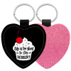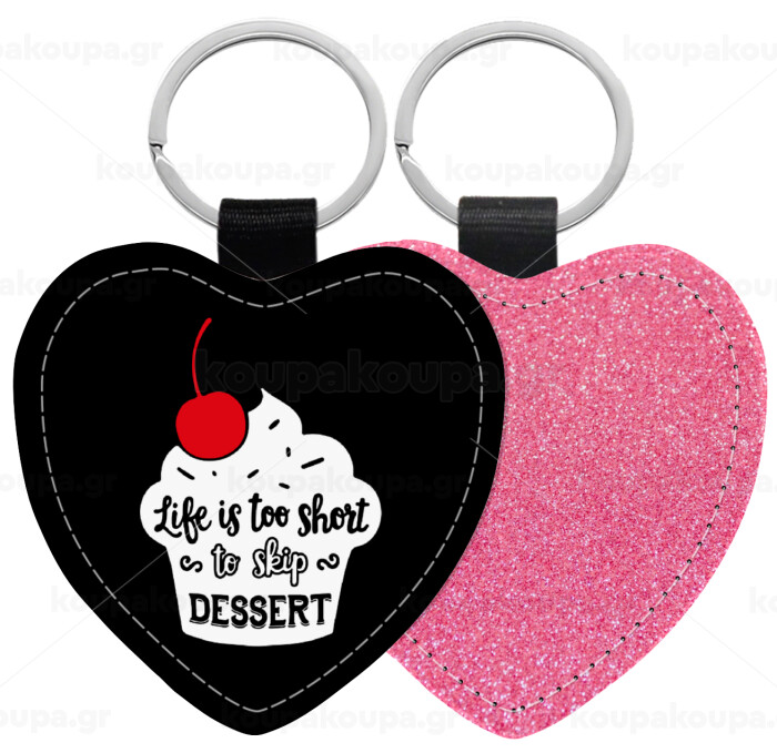 Life is too short, to skip Dessert, Μπρελόκ PU δερμάτινο glitter καρδιά ΡΟΖ