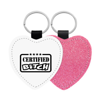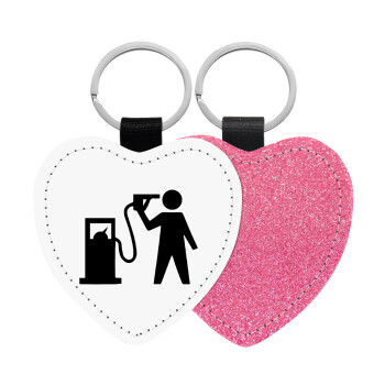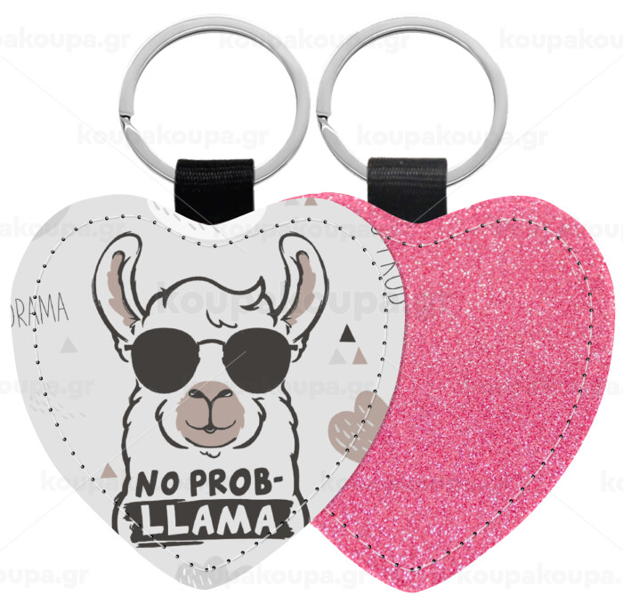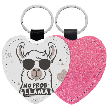 No Prob Llama, Μπρελόκ PU δερμάτινο glitter καρδιά ΡΟΖ