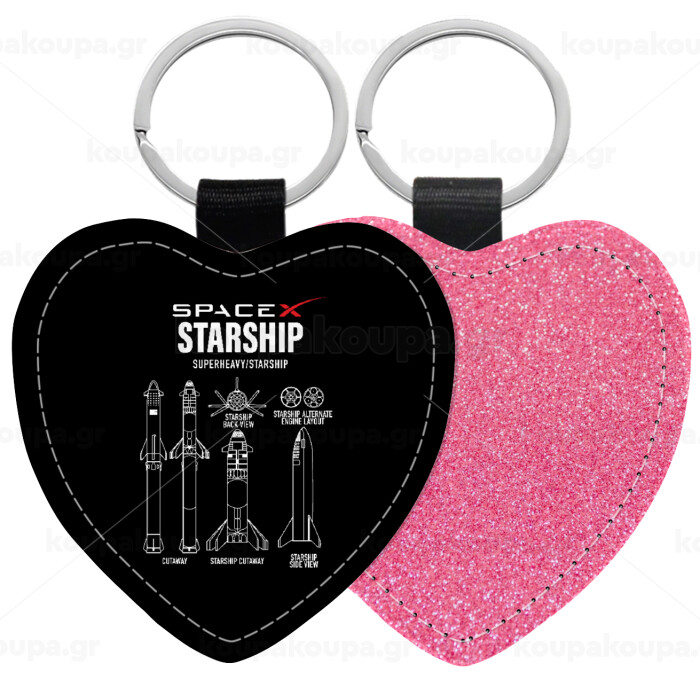 Space X, Μπρελόκ PU δερμάτινο glitter καρδιά ΡΟΖ