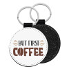 But first Coffee, Μπρελόκ Δερματίνη, στρογγυλό ΜΑΥΡΟ (5cm)