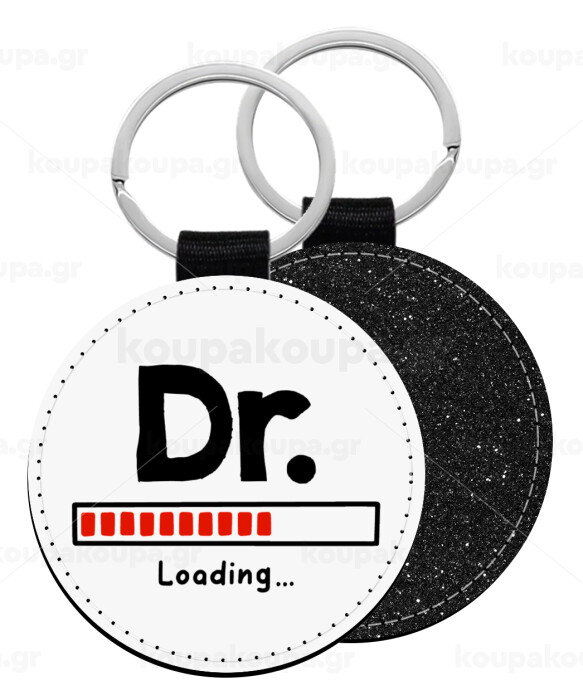 DR. Loading..., Μπρελόκ Δερματίνη, στρογγυλό ΜΑΥΡΟ (5cm)