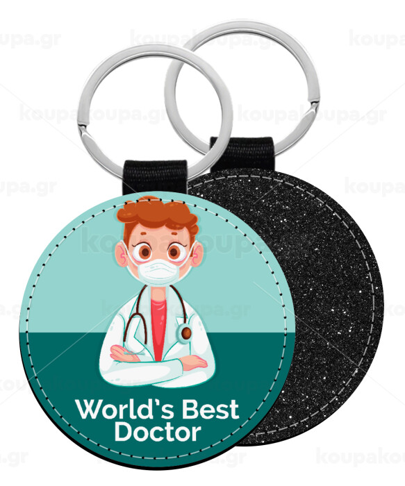 World's Best Doctor, Μπρελόκ Δερματίνη, στρογγυλό ΜΑΥΡΟ (5cm)