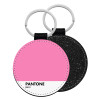 PANTONE Pink C, Μπρελόκ Δερματίνη, στρογγυλό ΜΑΥΡΟ (5cm)