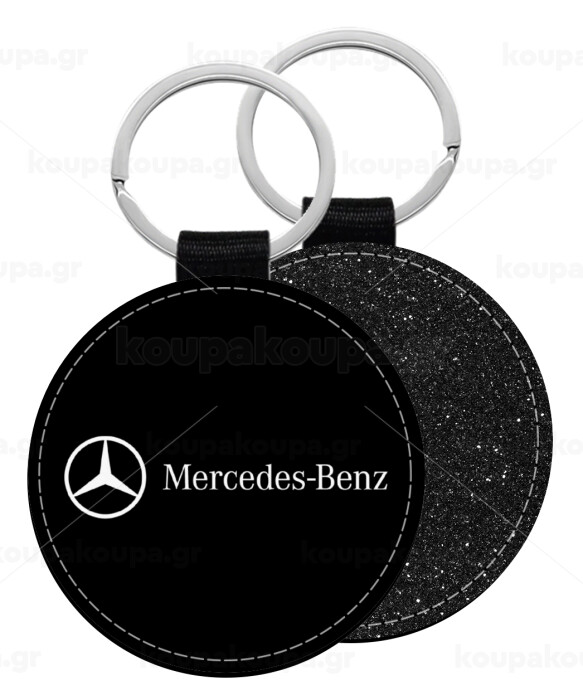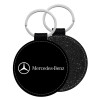 Mercedes small logo, Μπρελόκ Δερματίνη, στρογγυλό ΜΑΥΡΟ (5cm)