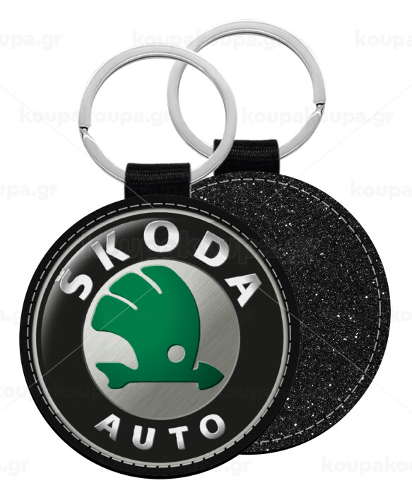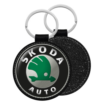 SKODA, Μπρελόκ Δερματίνη, στρογγυλό ΜΑΥΡΟ (5cm)