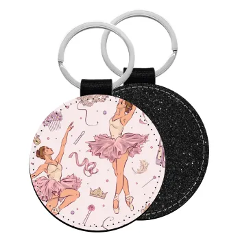 Μπαλαρίνα, Μπρελόκ Δερματίνη, στρογγυλό ΜΑΥΡΟ (5cm)