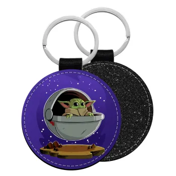 Baby Yoda mandalorian, Μπρελόκ Δερματίνη, στρογγυλό ΜΑΥΡΟ (5cm)