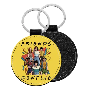 Friends Dont Lie, Stranger Things, Μπρελόκ Δερματίνη, στρογγυλό ΜΑΥΡΟ (5cm)