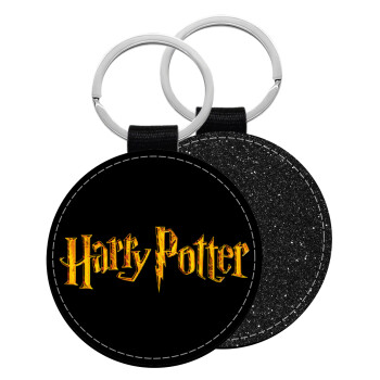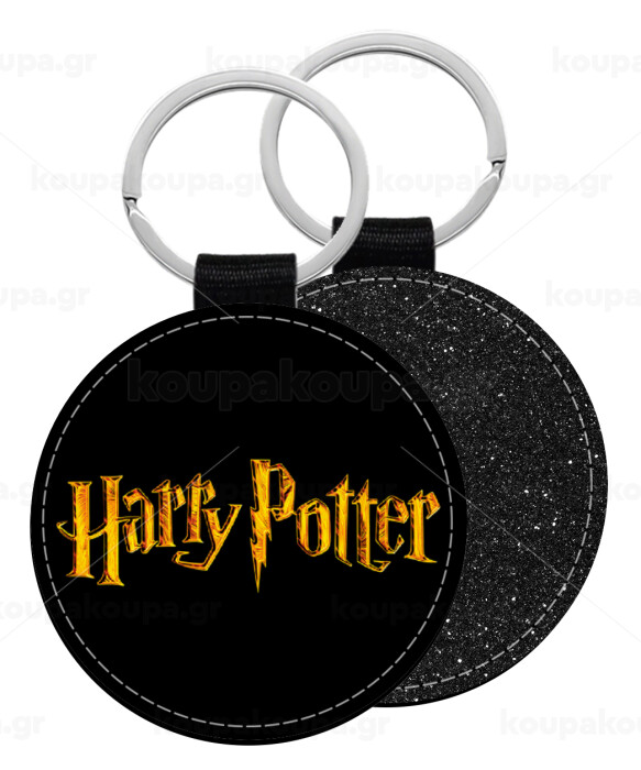 Harry potter movie, Μπρελόκ Δερματίνη, στρογγυλό ΜΑΥΡΟ (5cm)