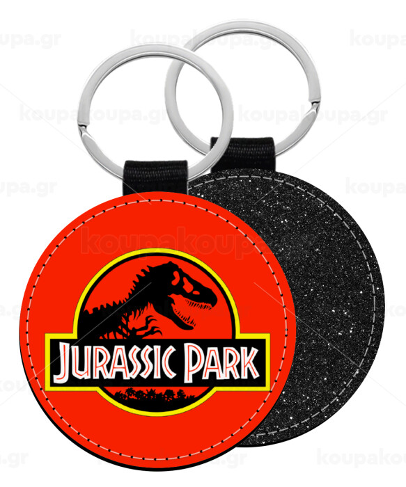 Jurassic park, Μπρελόκ Δερματίνη, στρογγυλό ΜΑΥΡΟ (5cm)