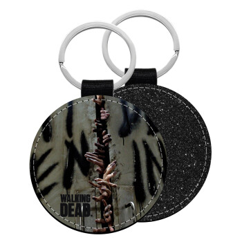 The walking dead hands, Μπρελόκ Δερματίνη, στρογγυλό ΜΑΥΡΟ (5cm)