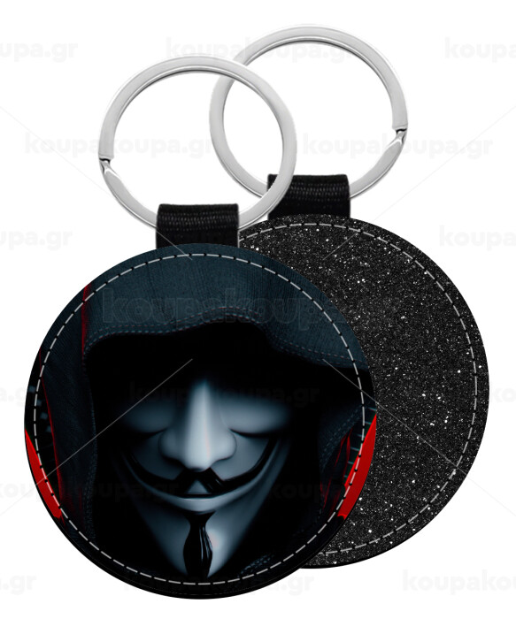 V for Vendetta, Μπρελόκ Δερματίνη, στρογγυλό ΜΑΥΡΟ (5cm)
