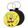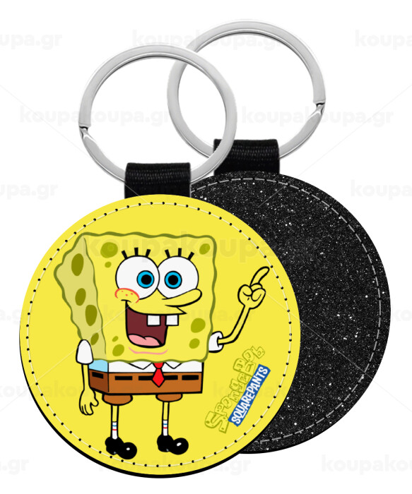 Μπομπ Σφουγγαράκης character, Μπρελόκ Δερματίνη, στρογγυλό ΜΑΥΡΟ (5cm)