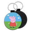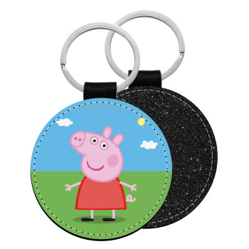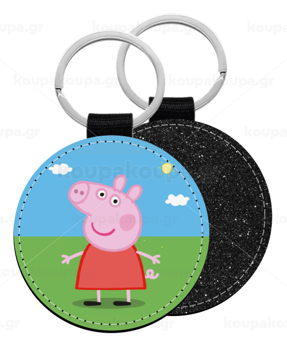 Πέππα το γουρουνάκι, Μπρελόκ Δερματίνη, στρογγυλό ΜΑΥΡΟ (5cm)