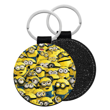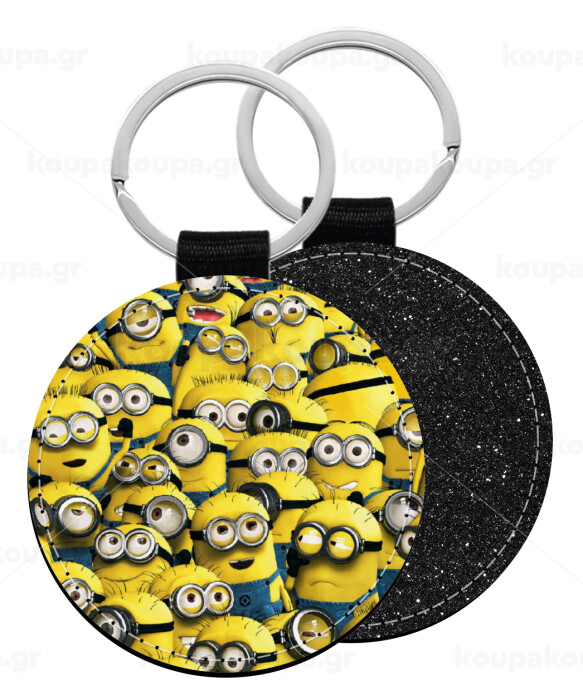 All the minions, Μπρελόκ Δερματίνη, στρογγυλό ΜΑΥΡΟ (5cm)