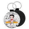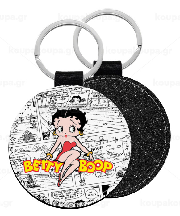 Betty Boop, Μπρελόκ Δερματίνη, στρογγυλό ΜΑΥΡΟ (5cm)