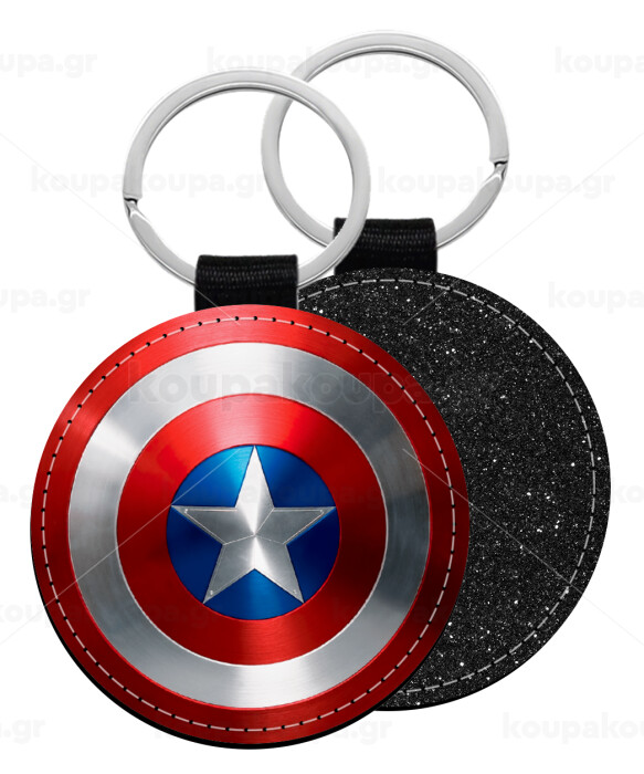 Captain America, Μπρελόκ Δερματίνη, στρογγυλό ΜΑΥΡΟ (5cm)