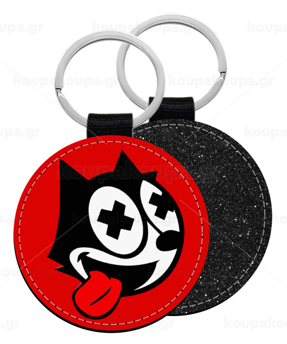 helix the cat, Μπρελόκ Δερματίνη, στρογγυλό ΜΑΥΡΟ (5cm)
